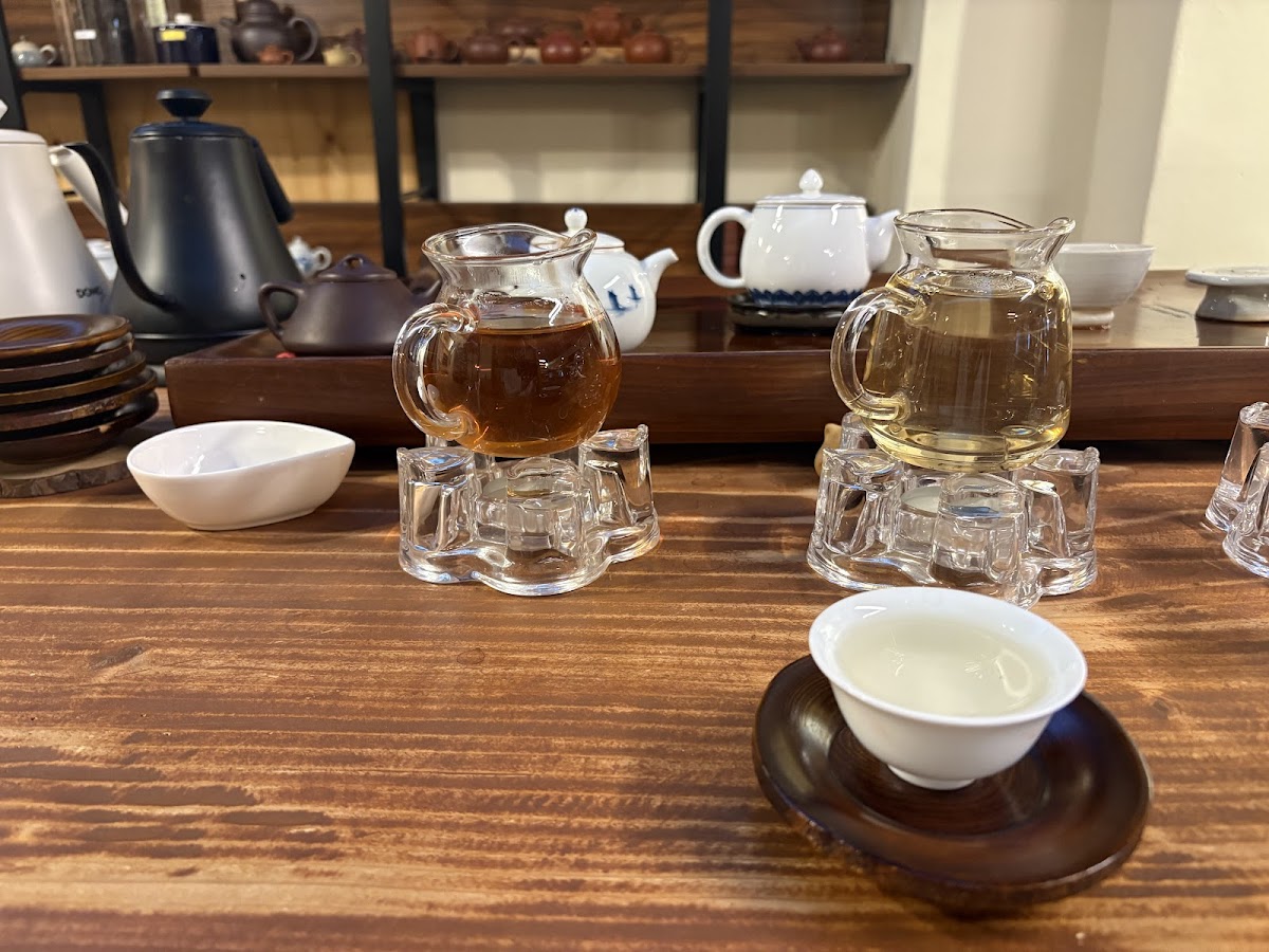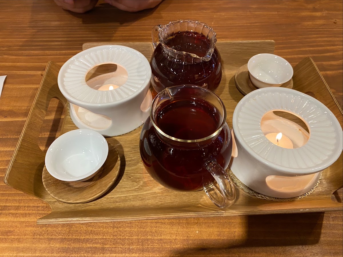 As you step inside, you’re welcomed by an enchanting atmosphere filled with beautiful tea paraphernalia that tells stories of tradition and craftsmanship. Each detail, from the delicate tea sets to the serene decor, invites you to embrace a moment of peace. And for cat lovers, the resident feline’s gentle presence adds a cozy touch, as you might catch a glimpse of it napping lazily under one of the tables.